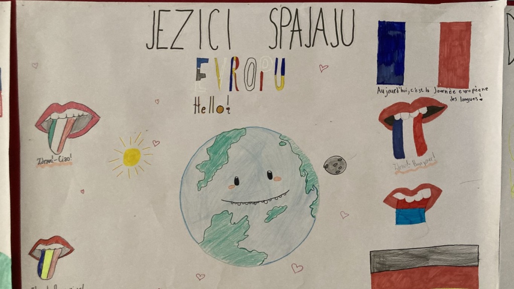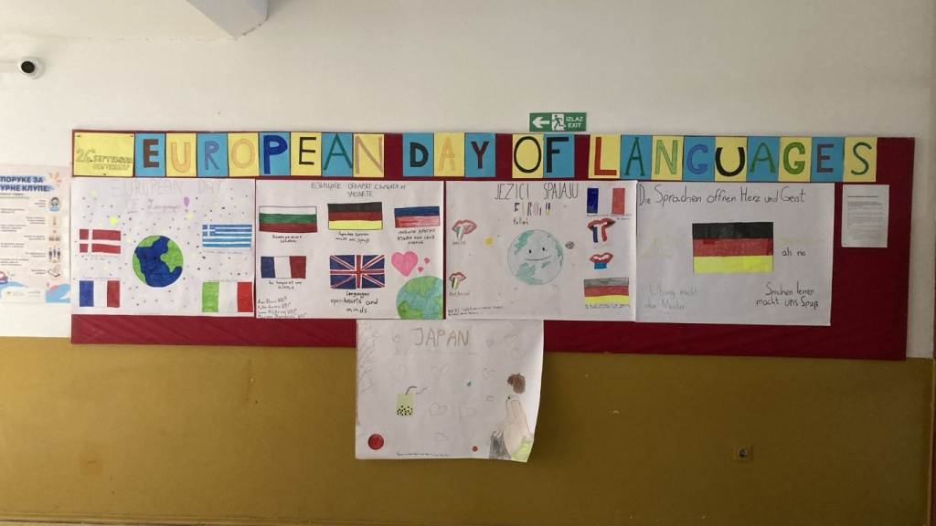 Чланови Актива страних језика, у сарадњи ученицима, на свечан и прикладан начин обиљежили су Европски дан језика. Током неколико дана реализован је низ занимљивих и едукативних активности чији је циљ био да се истакне значај учења страних језика и међукултурног разумијевања. Ученици су, уз подршку наставника, припремили и представили креативне радове, као што су пано са порукама на различитим језицима, видео-записе под заједничким слоганом „Језици отварају срце и ум“, као и кратке сценске наступе, квизове и радионице. Овим богатим програмом школа је послала поруку о важности његовања језичке разноликости и подстакла ученике да наставе да откривају нове језике и културе.