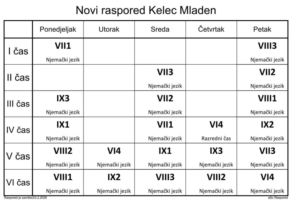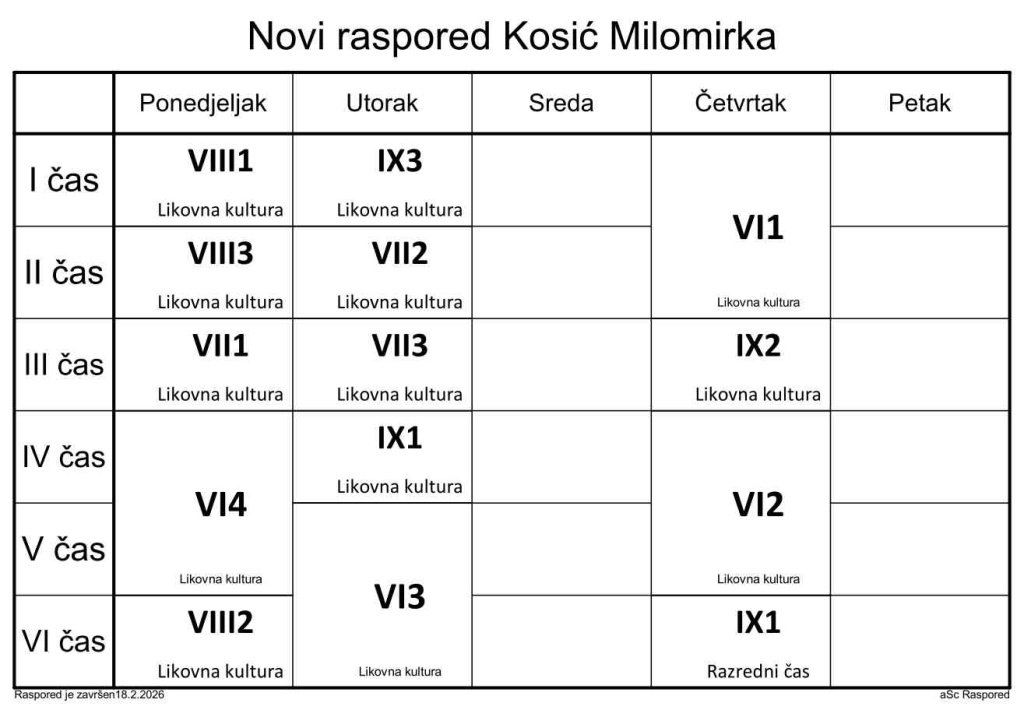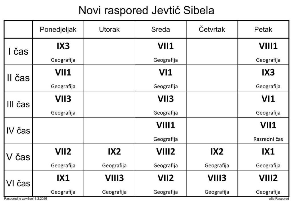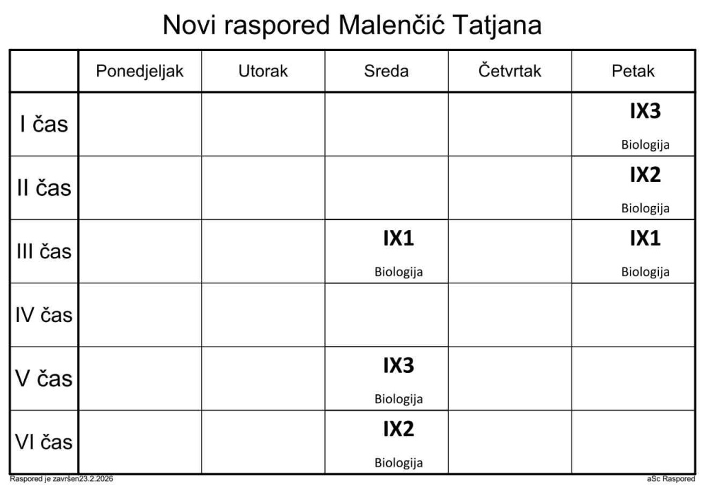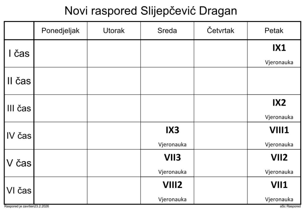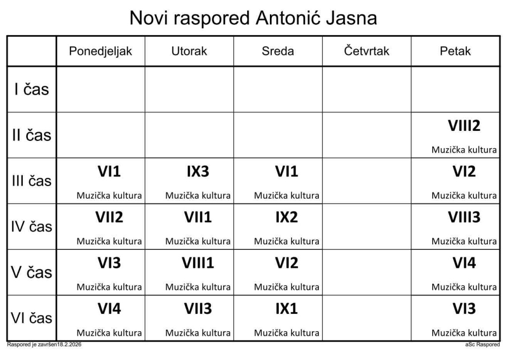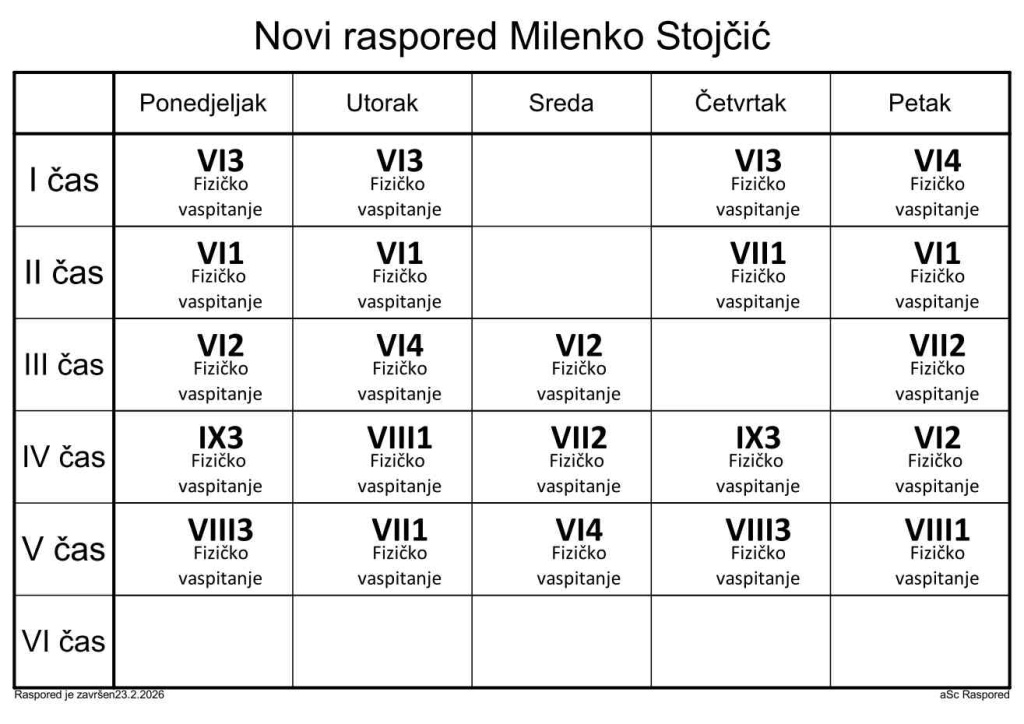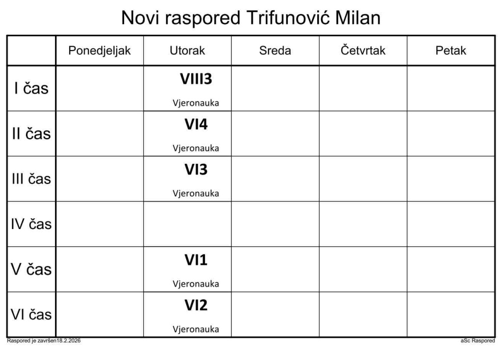 Распоред часова за наставнике у школској 2025/2026. години
